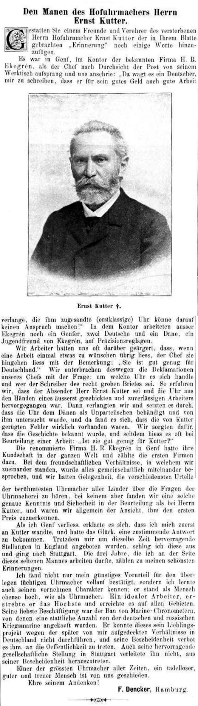 Ernst Kutter war ein deutscher Chronometermacher aus Stuttgart, gleichzeitig war er aber auch Hofuhrmacher. |