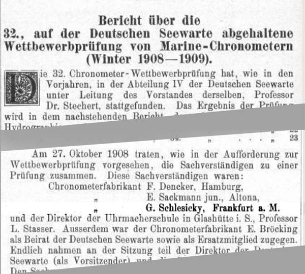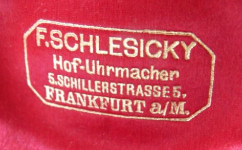 Bekannt sind 39 Marinechronometer, welche mit "F.Schlesicky, Frankfurt" also dem Geschäftsgründer signiert sind.