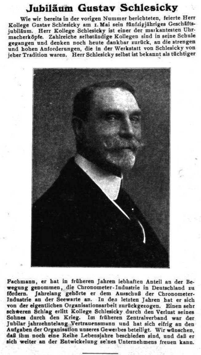 Gustav Schlesicky war auch wie sein Vater Hofuhrmacher und höchstwahrscheinlich der wahre Chronometerbauer in der Familie.