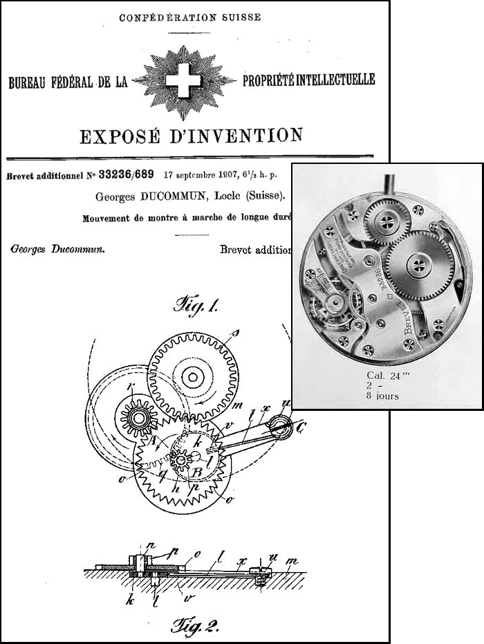 Als Basis benutzte Ducommun das 24'''ige Ebauche der Manufaktur "Sonceboz". Sein Uhrwerk war sehr beliebt und wurde gerne bei der Eisenbahn, Luftfahrt aber vorallem in der neu aufkommenden Autoindustrie verbaut. Bekannt ist, dass die Autos von "Bugatti" mit DOXA-Uhren ausgeliefert wurden. Speziell für Autouhren entwickelte Ducommun ein eigenes Gehäuse, welches er sich auch patentieren ließ (94872). |