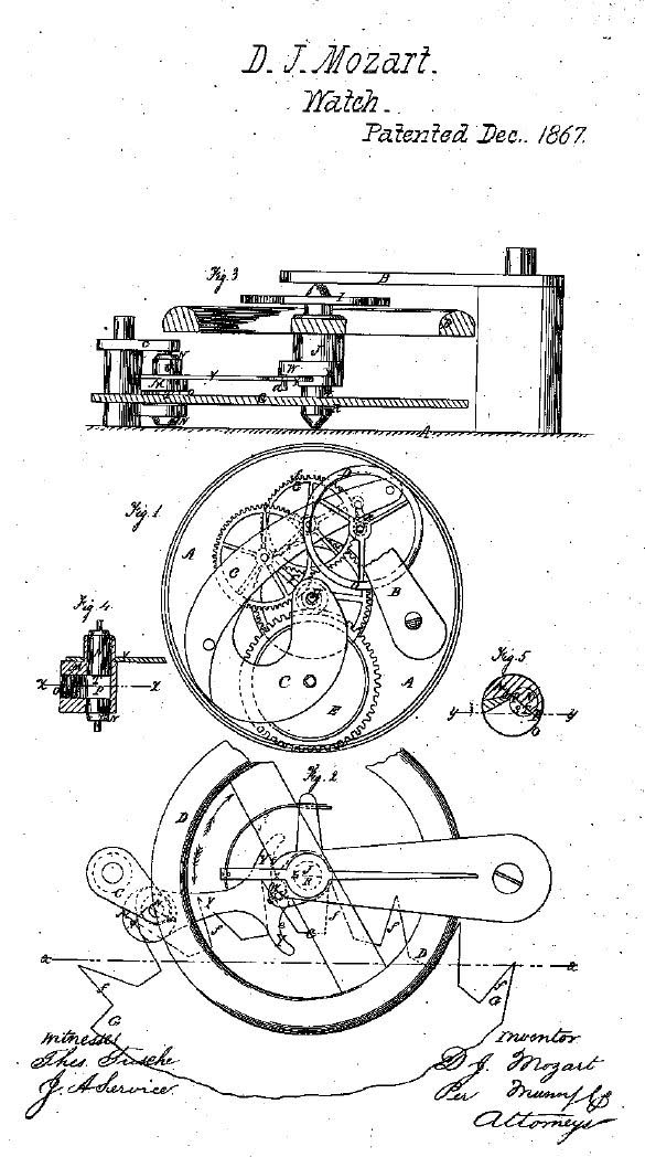 1864 gründete Donald Joseph Mozart (*1820, +1877) in Providence, Rhode Island eine Uhrenfabrik unter der Bezeichnung "Mozart Watch Company".