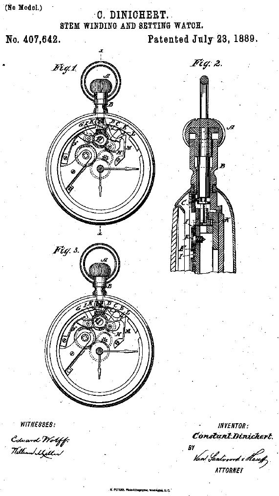 Dessen Sohn Constant Dinichert jr. (*15.11.1862, +09.03.1940 Murten), der zuvor eine Uhrmacherausbildung an der Uhrmacherschule