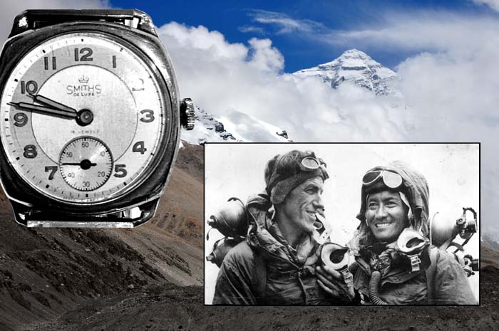 In den 30ern ließ sich Smith ein Patent für elektrische Synchron-Uhren sichern (Abb.s.o.). Als weiteres horologisches Highlight der Firma darf nicht unerwähnt bleiben, dass Sir Edmund Hillary 1953 bei der Erstbesteigung des Mt. Everst eine Armbanduhr der porträtierten Firma trug (Abb.s.u.). Aber auch bei der Commonwealth Trans-Arctic Expedition 1956 griff man auf Smith-Instrumentarium zurück. |