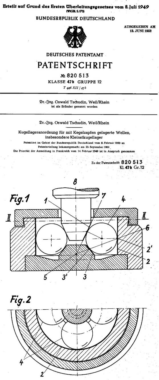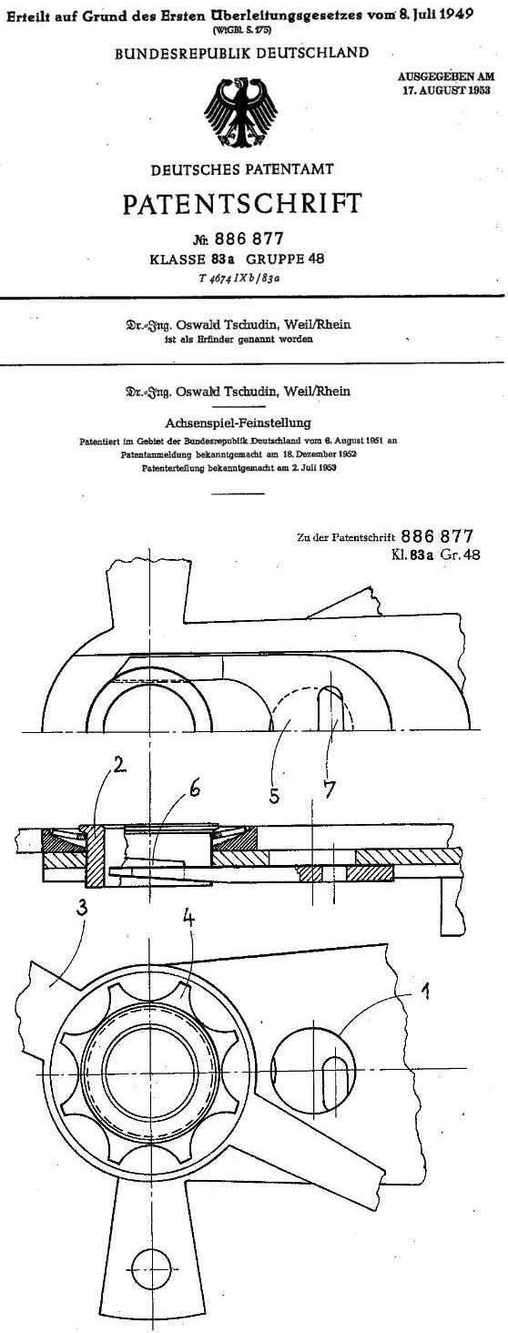 In den frühen Fünfzigern kam es zu technischen Innovationen, die auch patentiert wurden. Der Inhaber der Patente war ein gewisser Dr. Ing. Oswald Tschudin, Weil / Rhein. Es handelt sich dabei um folgende Patente: DE886877, DE820513 (s.o/s.u.). |