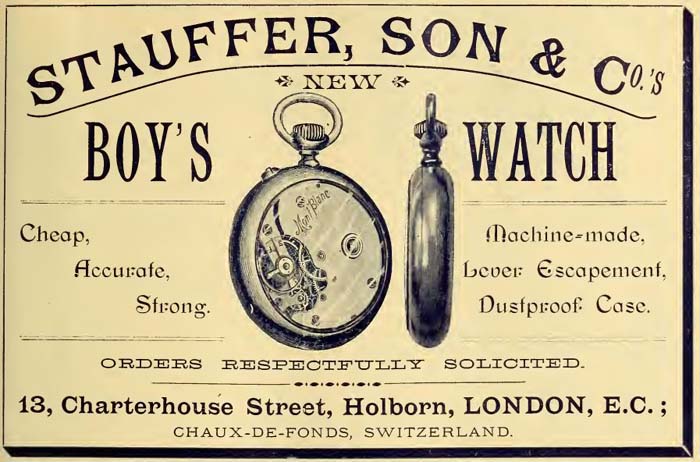 Im gleichen Jahr (1880) wurde die Firma als Uhrenhersteller unter der Marke "Stauffer, Son & Co." registriert.