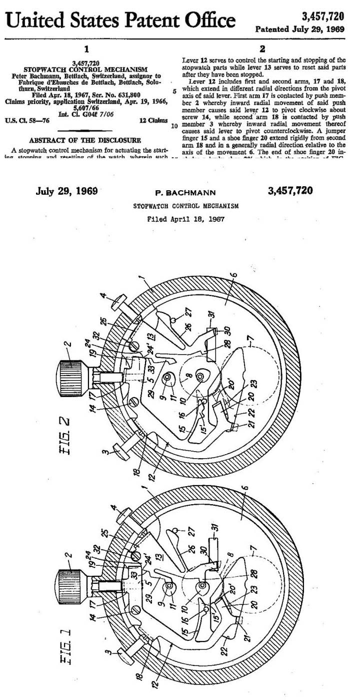 Auf dem Werk ist eine Patentnummer vermerkt. Das Patent ist unten zu sehen. Dasselbe Patent wurde in der Schweiz unter der Nummer 466152 und in Deutschland unter der Nummer 1673828 veröffentlicht. | ||