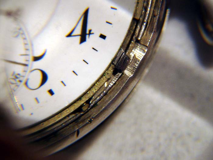 Hier sieht man nun eindeutig, dass das Zifferblatt nicht original ist,