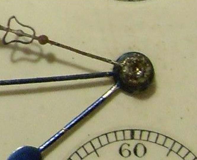 abgebrochener Sekundenzeiger - unter dem Stundenzeiger verborgen